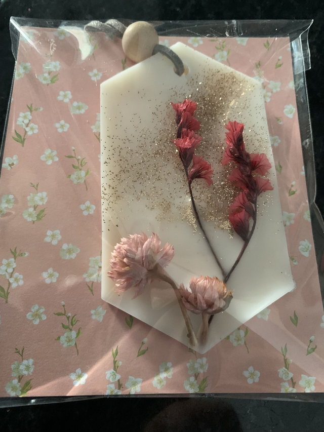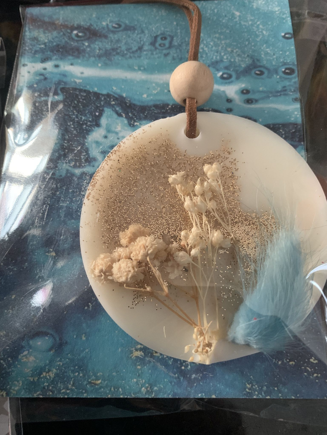 Suspension en cire de soja sans ogm et parfum élaboré à Grasse, différents modèles possibles et différents parfums, vanille, noix de coco, monoï, figues, linge, propre, fruits rouges, Iris et lavande.